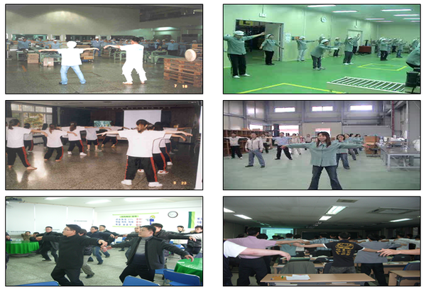 특히 한국화장품 생산직 직원들에게 지속적인 탈춤체조 시행 후, 근골격계질환 증상호소완화 (어깨와 허리의 매우 심한통증과 심한통증 9개월 이후 감소) 및 산재보험료 절감효과를 얻었다.