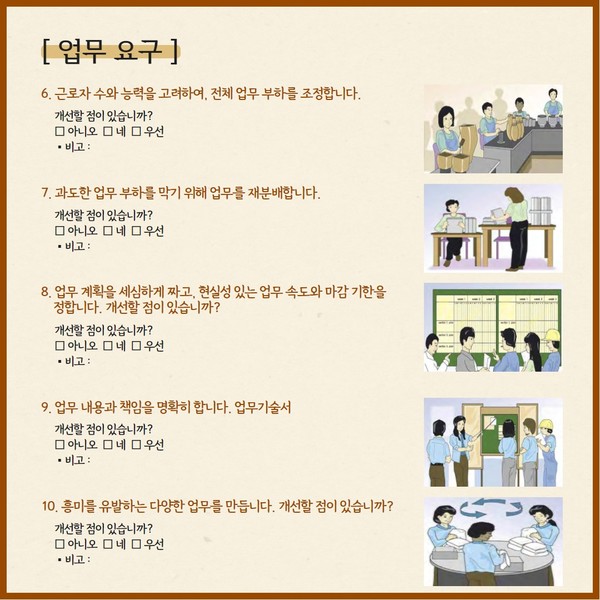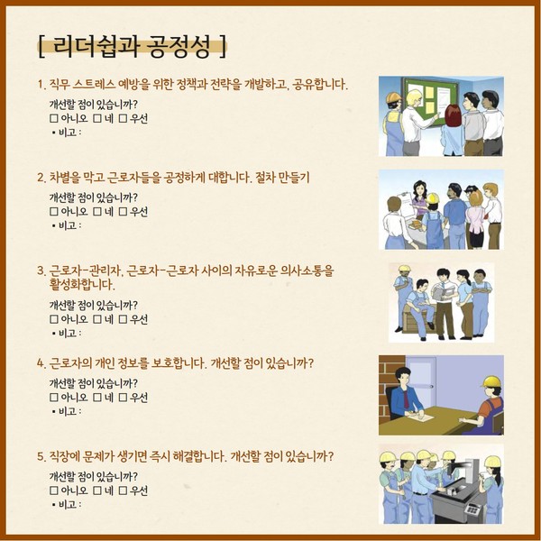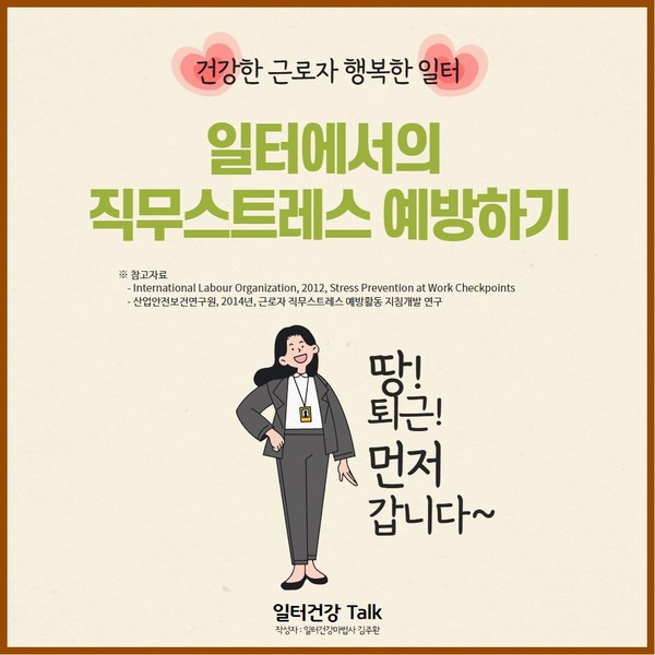 직무스트레스는 피로 증가와 짜증스런 반응의 표현 증가, 집중과 휴식이 힘들어지며 합리적인 사고가 힘들어지고, 비정상적인 작업 행태 및 수면 장애, 심장 질환, 소화기 장애, 고혈압, 두통, 근골격계 질환 등의 신체적, 정신적 건강의 악화를 야기할 수 있다.