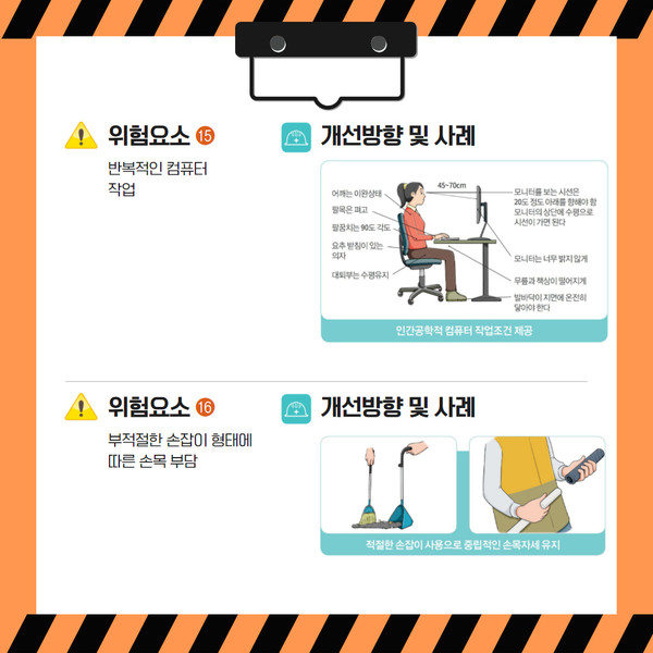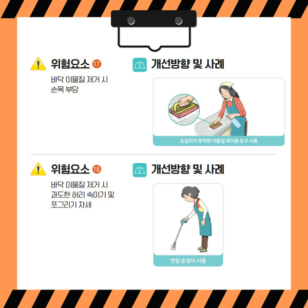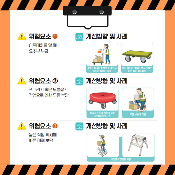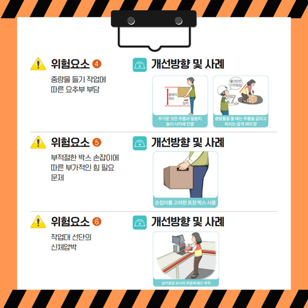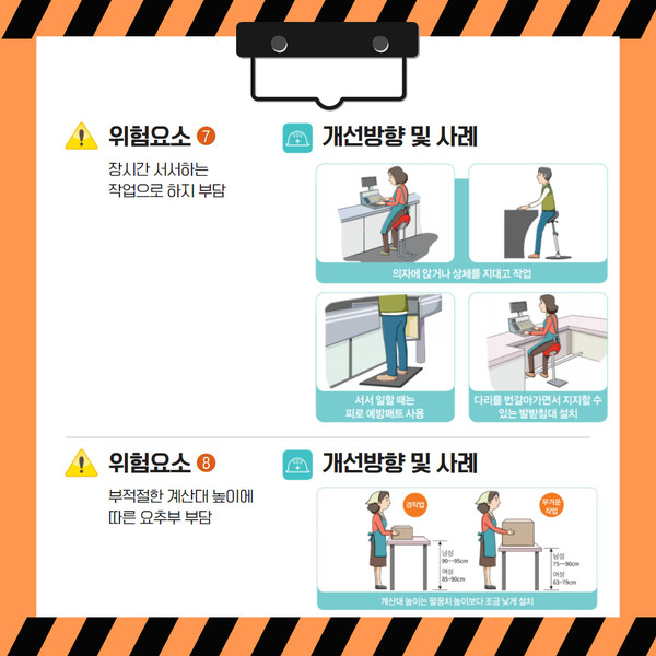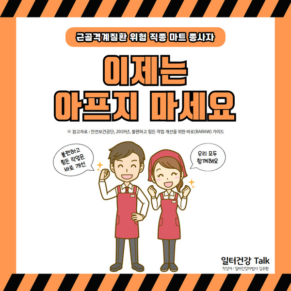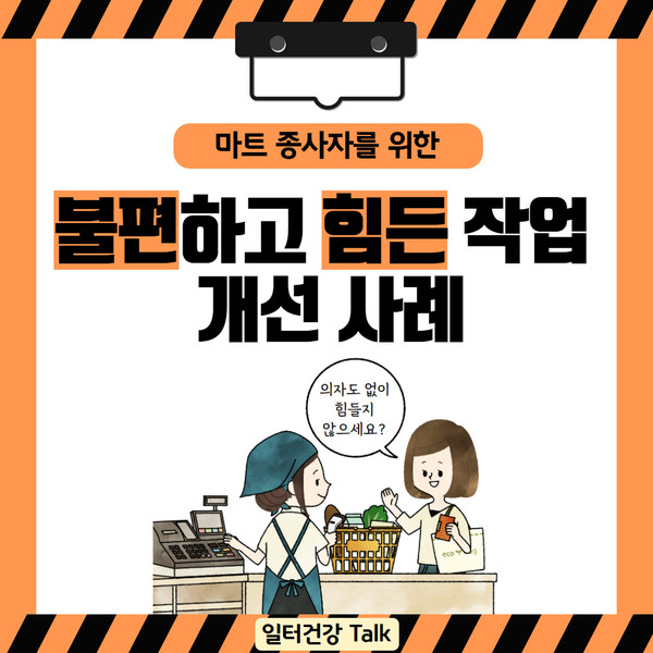 마트 종사자들의 작업은 중량물 작업에 따른 과도한 힘의 사용, 과도한 허리 숙이기, 쪼그리기 자세 등 부적절한 작업자세가 주로 문제되는 근골격계질환 발생의 위험 직종으로 알려져 있다.