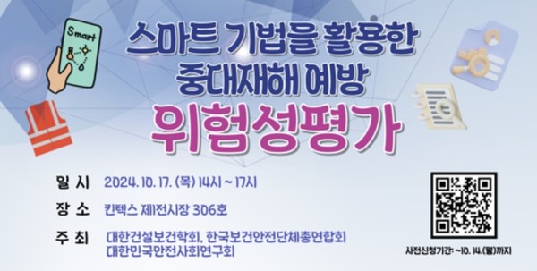 [세이프티퍼스트닷뉴스] 한국보건안전단체총연합회와 대한건설보건학회는 10월 17일 킨텍스 제1전시장 306호에서 '스마트 기법을 활용한 중대재해 예방 위험성 평가'를 주제로 제26회 보건안전포럼을 개최한다.