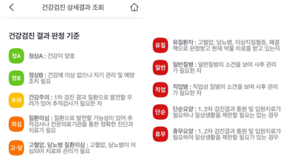 검진 결과에서 붉은색(고위험)이나 주황색(주의) 경고가 나타난 직원은 근로자 건강센터나 의료기관을 방문하도록 안내해야 한다. 이를 통해 질환 발생 위험이 높은 직원들에게 필요한 조치를 취할 수 있다.