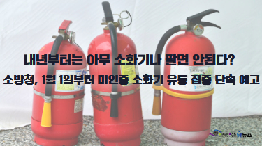 [세이프티퍼스트닷뉴스] 소방청이 오는 1월 1일부터 미인증 소화기와 소화 성능을 과장한 광고에 대해 집중 단속에 나선다.