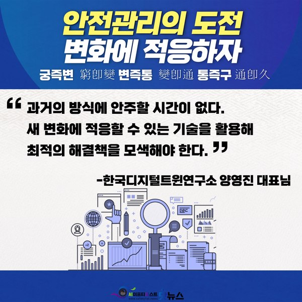 AI와 디지털트윈은 단순한 기술이 아닌, 작업장 안전을 보장하는 핵심 도구로 자리 잡고 있습니다. 변화에 적응하고 기술을 활용하는 것이 필수적인 시대, 우리는 ‘궁즉변(窮卽變) 변즉통(變卽通) 통즉구(通卽久)’의 철학을 바탕으로 AI와 디지털트윈을 통해 새로운 가능성을 열어가야 합니다.
