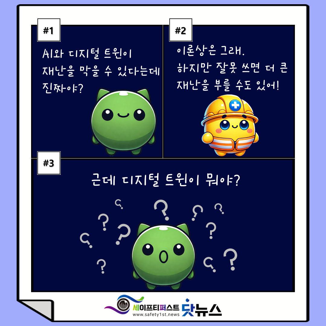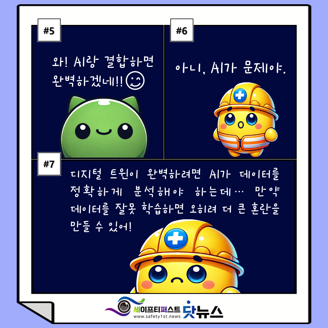 #디지털트윈 #원리 기반 모델링 #데이터 순환 문제 #재난예방 #AI재난예측 #스마트재난대응 #원리기반AI #안전보건기술 #산업안전 #산업안전AI #디지털 안전관리 #기술 기반 재난 대응 #스마트 안전보건 #산업현장 디지털 대응 #AI 안전보건 협업 #재난 대응 시뮬레이션 #데이터 오류와 AI 위험 #안전기술 카드뉴스 #스마트 기술로 재난을 예방하는 시대 #안전 Talk Talk