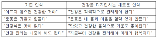 다음은 건강에 대한 인식의 변화를 보여주는 예시이다.