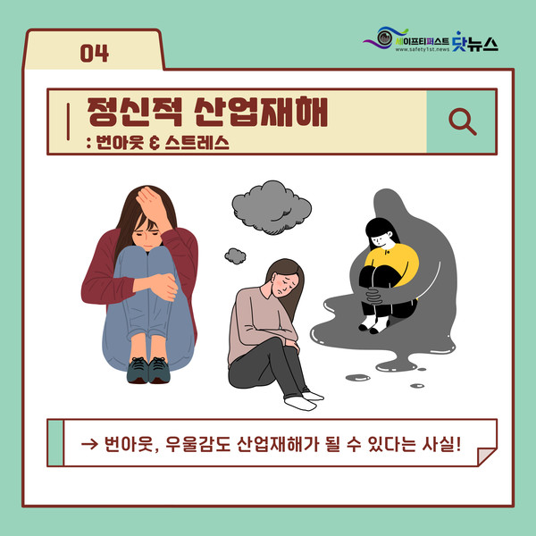 또한 직무 스트레스로 인한 우울감, 불안장애, 번아웃 증후군 등도 신체적 질환 못지않게 중요한 산업보건 이슈로 자리 잡고 있다. 최근 법원은 업무 관련 스트레스로 인한 정신질환에 대해 산업재해로 인정하는 사례가 증가하고 있으며, 이에 대한 기업 차원의 예방체계 구축이 요구된다.