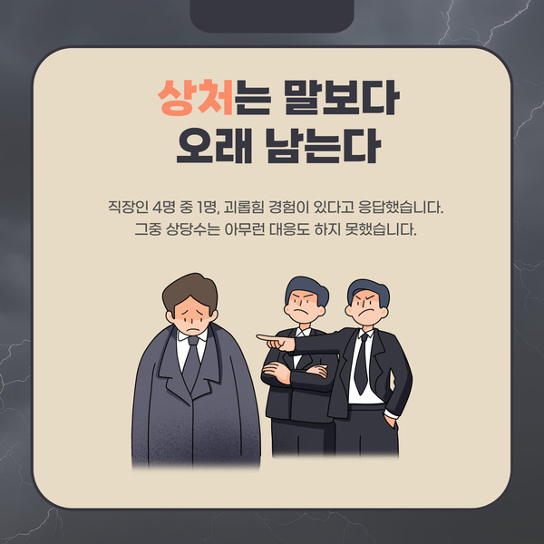 말 한마디가 흉기가 될 수 있다. 직장 내 괴롭힘은 더 이상 참아야할 일이 아니다.