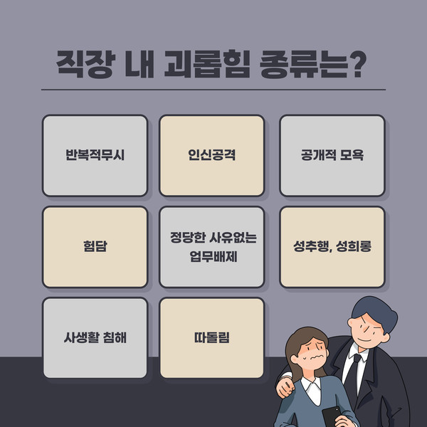 예시로는 ▲반복적 무시와 인신공격 ▲공개적인 모욕이나 고함 ▲정당한 사유 없는 업무 배제 ▲사생활 침해, 따돌림 등이다. 이러한 행위는 더 이상 '상사와 부하의 문제'가 아닌, 법률적 문제이다.