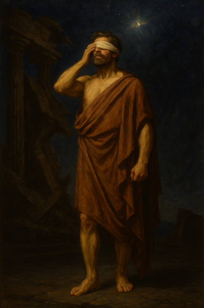 까뮈는 이를 ‘부조리’라 불렀다. 인간은 의미를 갈망하지만, 세계는 끝내 침묵한다. 오이디푸스가 모든 노력을 기울였음에도 예언은 실현되었고, 그의 눈물 어린 항거조차 신의 장난처럼 보인다. 하지만 결정적 순간에 그는 도망치지 않았다. 스스로 눈을 찌르며 진실을 외면하지 않겠다고 선언했다. 그것은 부조리 앞에서 끝내 눈을 감지 않겠다는, 어떤 반항의 몸짓이었다.