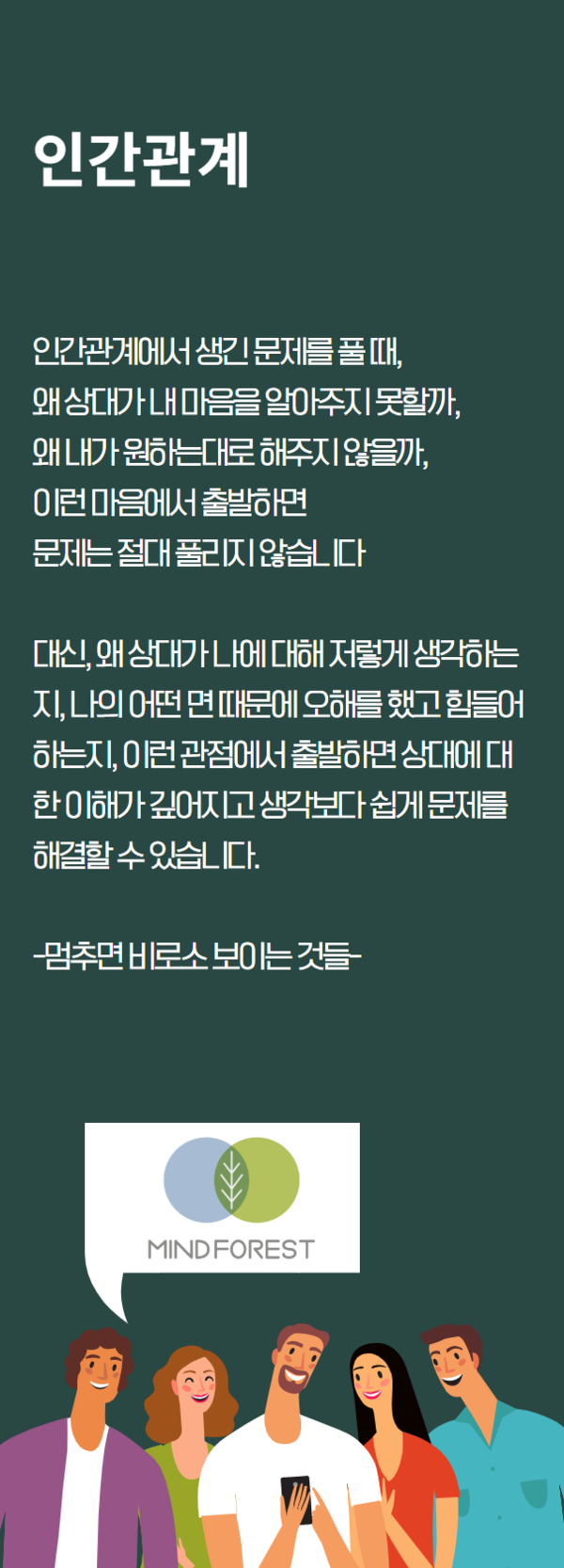 지금 힘든 인간관게를 겪고 계신 분들도 있을거고, 그렇지 않은 분들도 있을겁니다