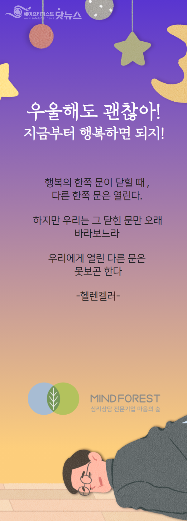 행복의 한쪽 문이 닫힐 때, 다른 한쪽문이 열린다고 합니다. 지금 힘든 분이 계시더라도, 내 주변 구석구석을 살펴보면 또 다른 행복이 존재하고 있지 않을까요?