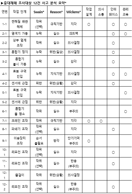 자료②, 국내 화학 사고 휴먼 에러 기반 분석